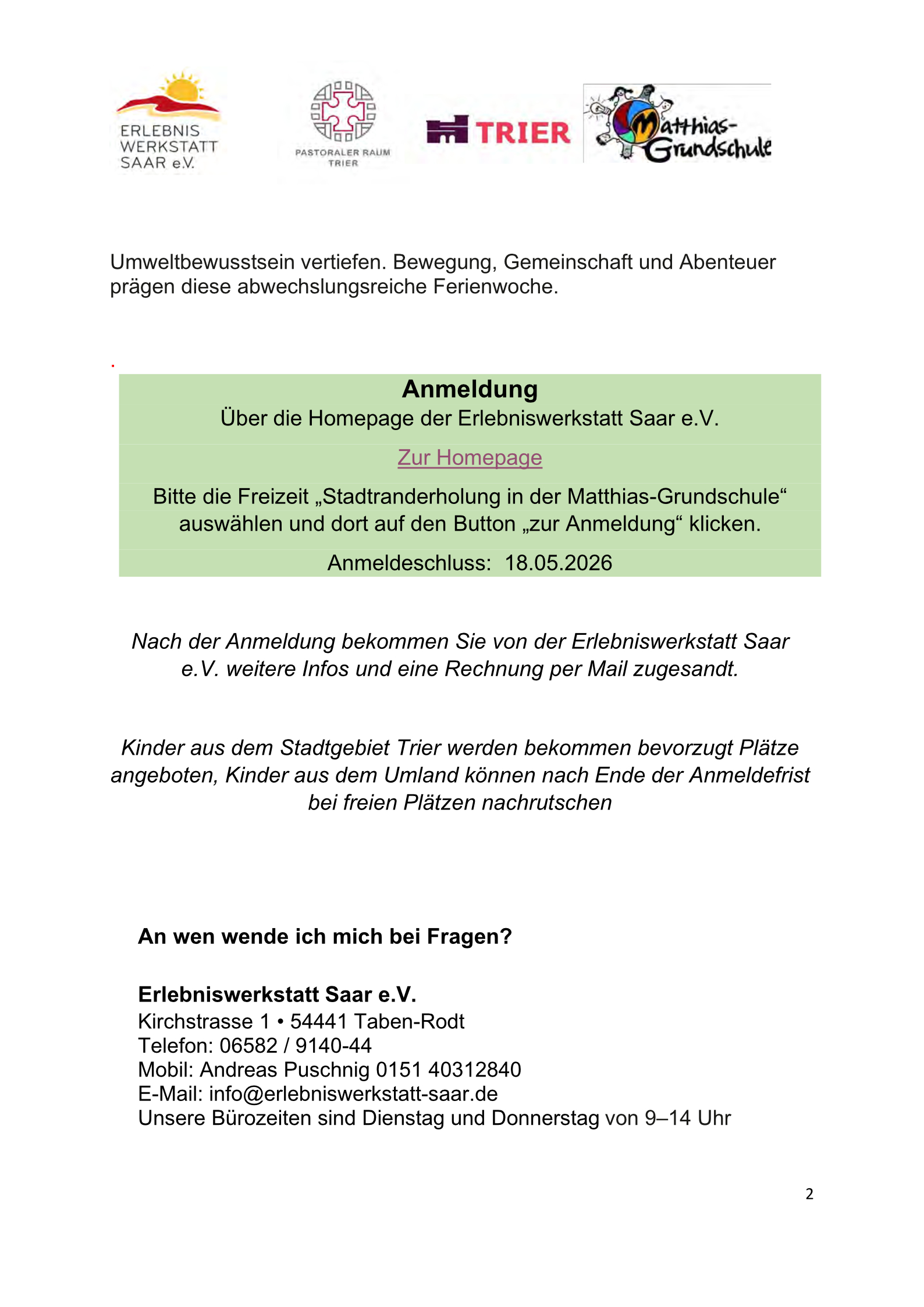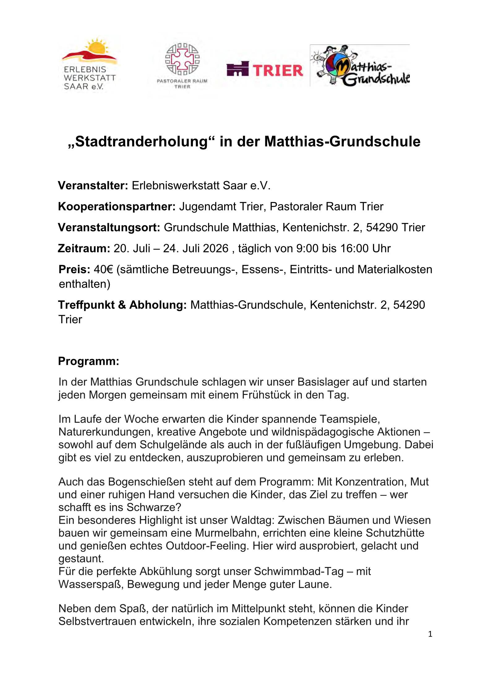 Stadtranderholung für Grundschulkinder